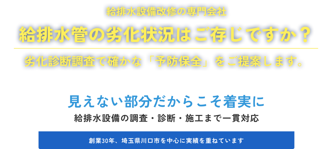 マンション・ビルの給排水設備工事、劣化診断・修繕に関するご相談は、お気軽にお問い合わせください。